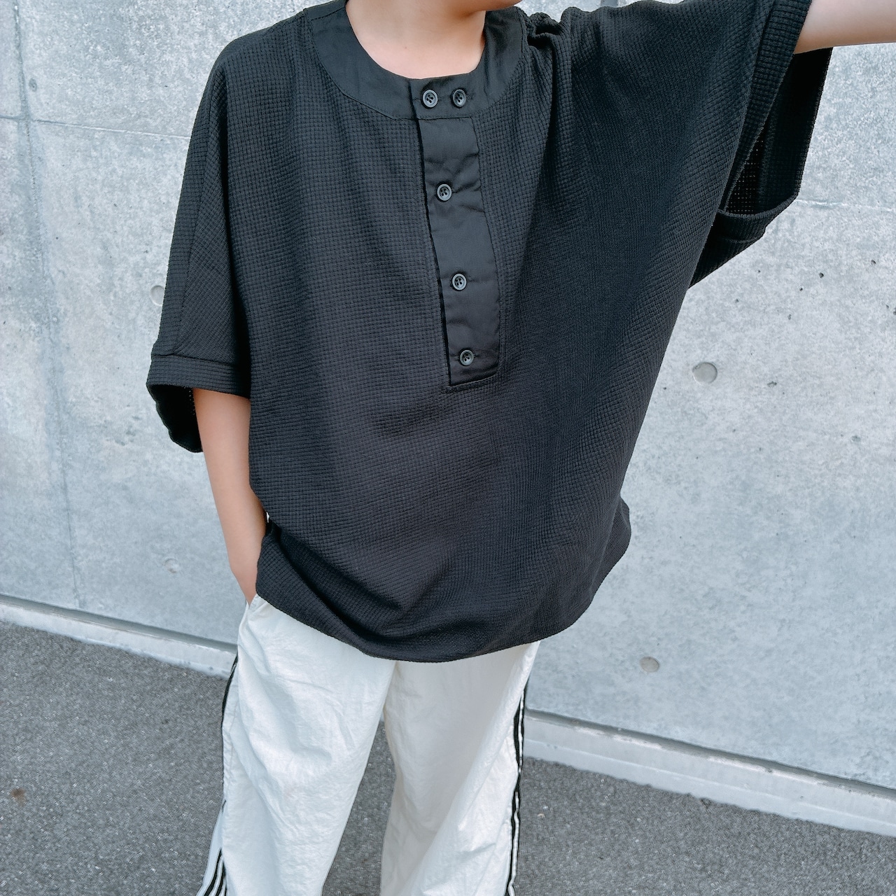 フロントのボタンがアクセントになり開けたり閉めたり幅広い着こなしが可能です◎